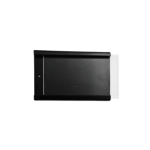 Finish: Matte black powdercoated metal with a piece of clear acrylic